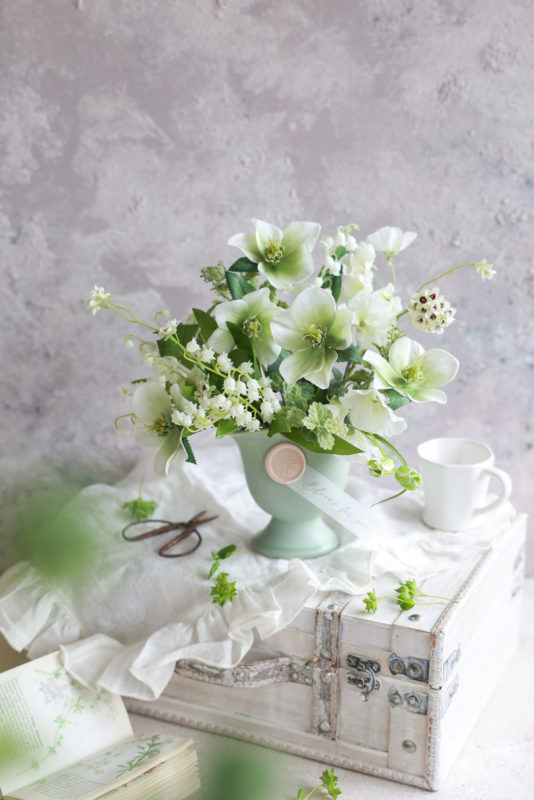 母の日のギフト「ミュゲの庭」8,800円 (クリスマスローズとスズランなどを使用)