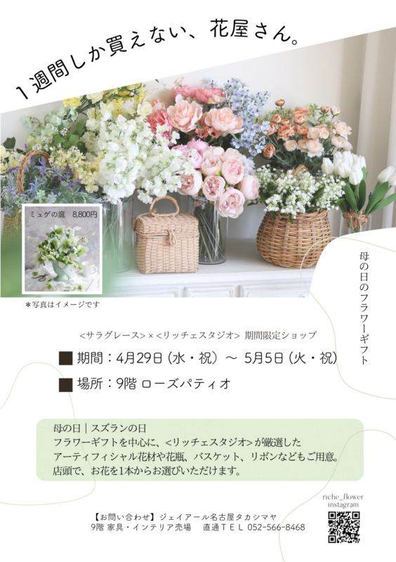 (↑こちらはサラグレース×リッチェスタジオ 母の日限定コラボギフト商品)