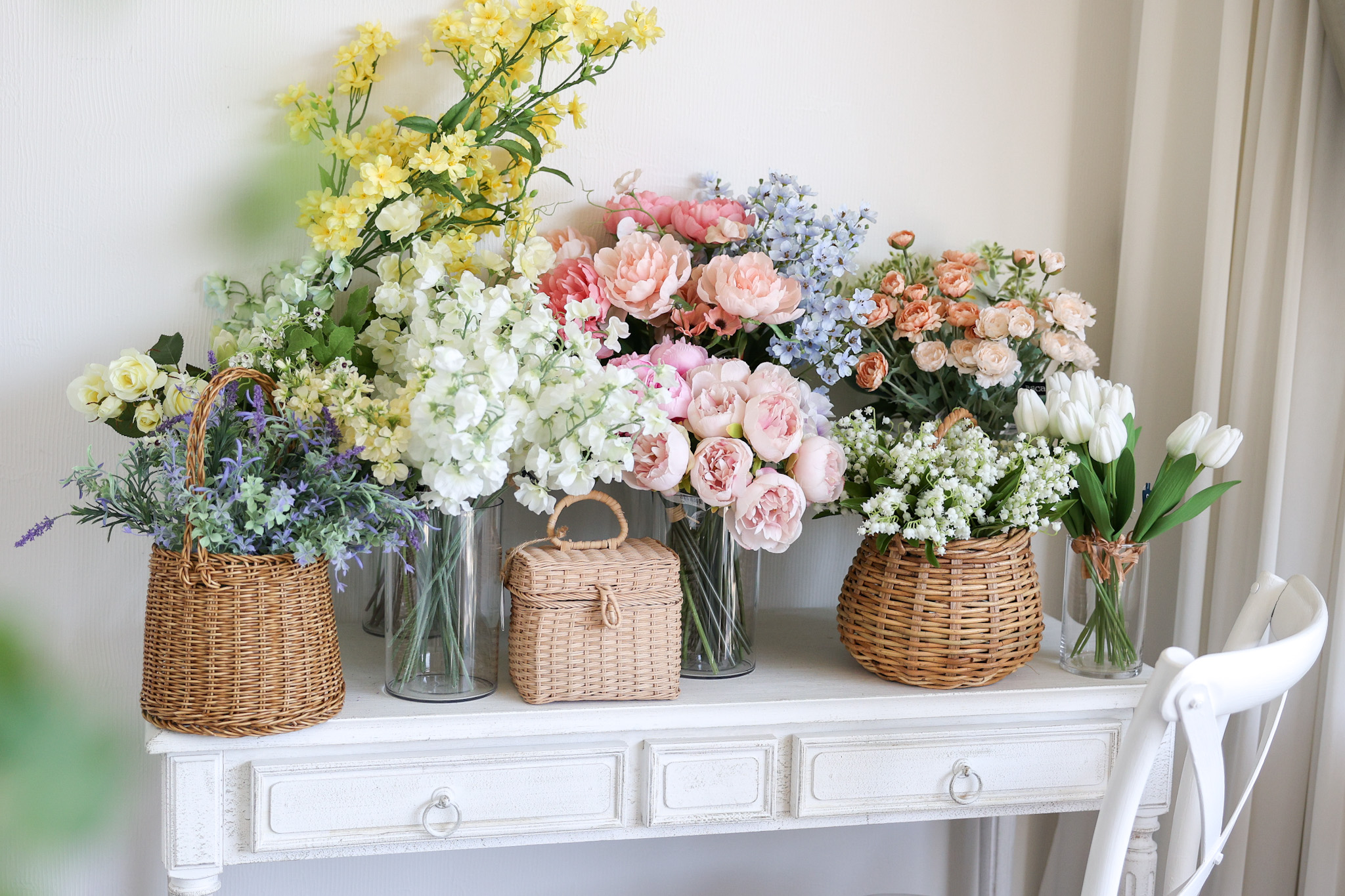 アーティフィシャルフラワーや、花瓶、バスケット、リボンなども購入いただけるようになりました。